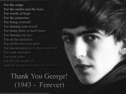 "12 anos sem sua presença física, mas uma eternidade com sua música, seu ensinamento, sua alegria, sua alma. O beatle quieto, mas que sem ele não seriam os Beatles, não veríamos o sol chegando, não teríamos Something, Within you without you, não teríamos a música indiana no rock, não teríamos Eric Clapton tocando com os Beatles, não teríamos a emoção de relembrar ele durante os shows do Paul. Nossas vidas e emoções seriam outras, mas com suas músicas e ensinamentos, elas se tornam bem melhores.