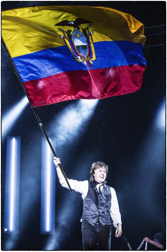Paul McCartney apareceu no palco em um terno preto, camisa bicolor (preto e branco), abrigava uma Borgonha elegante e é claro, o seu baixo lendário. "O que disse Quito?" Foram suas primeiras palavras com as quais ele se dirigiu à multidão. Gritos e aplausos receberam o músico, que seguiu com Save Us, All My Loving e Listen to What The Man Said.
