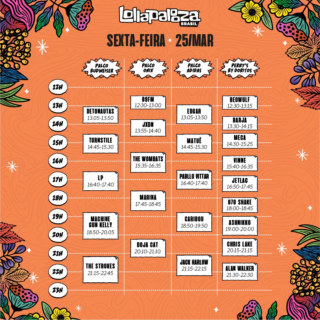 No domingo, 27 de março, Gloria Groove sobe ao palco Perry's by Doritos, às 20h. Ela estreia a sua nova turnê no Lolla. “Chego no festival com o show Lady Leste Tour, que vem pra abrir oficialmente o trabalho de divulgação do meu último álbum pelo Brasil afora. O show conta com novo setlist, novas coreografias, novos telões, novo figurino… Tudo que um grande show pop tem direito! Nele, eu celebro alguns dos melhores momentos da carreira e também trago sucessos como 'A Queda', 'Bonekinha', 'Leilão' e 'Vermelho'", revela. "Estar prestes a me apresentar no palco do Lollapalooza e dividir o line-up com tantos artistas de quem sou fã, é a realização de um grande sonho, e mais uma prova de que vale muito a pena sonhar, se dedicar, trabalhar e realizar. É muito impactante saber tudo o que represento sendo uma drag queen brasileira ocupando este espaço. Sinto que ficará marcado para sempre como um dos grandes shows da minha vida!”, completa Gloria Groove.